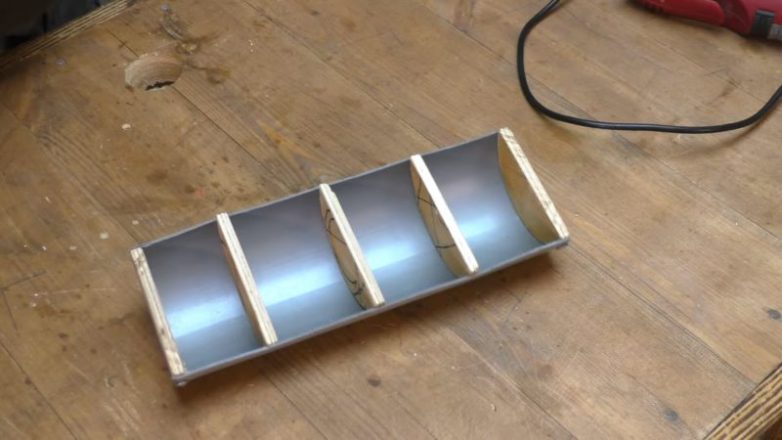 Следом мастер взял кусок дерева, обработал его и уголком закрепил пластиковую трубу.