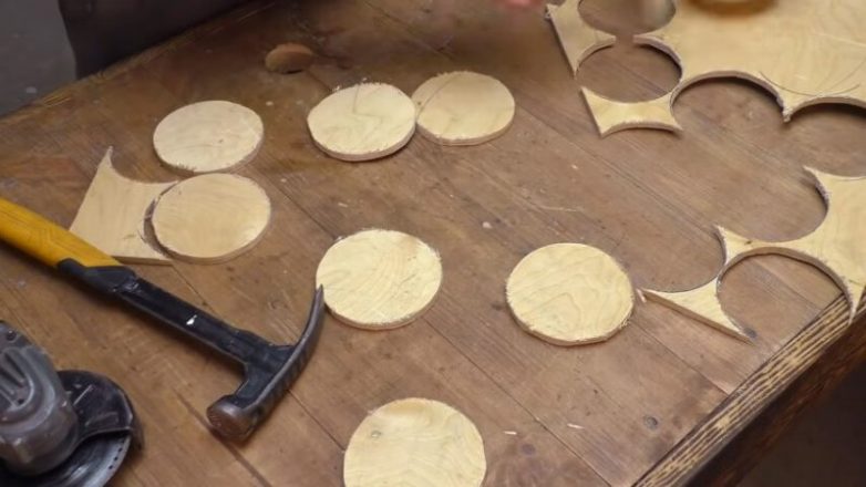 Из фанеры вырезал круги, соответствующие по диаметру трубе.