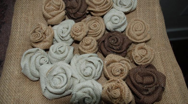 Цветы из мешковины своими руками делают на основе фотографий, найденных в интернете. От готового дизайна оттолкнуться легче. Поэтому изначально стоит ознакомиться с вариантами оформления, а потом приниматься за непосредственное создание собственного шедевра.