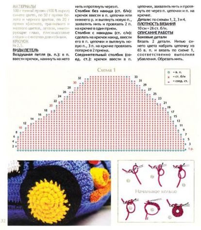 — вязальный крючок должен быть в 1,5-2 раза тоньше ниток, чтобы вязка была плотной и смотрелась красиво— для изготовления игрушек лучше брать яркие хлопчатобумажные нитки, смешанную пряжу или акрил