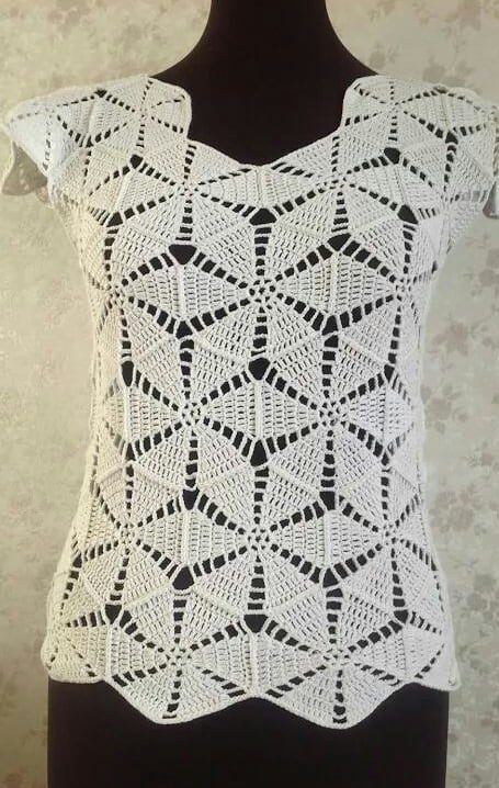 И снова филейная сетка, но теперь уже с открытым плечом.