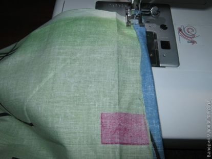 Начала с самого большого и сложного: пододеяльника. От низа заготовки отрезала лишние пять сантиметров.