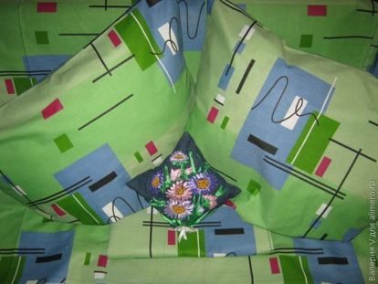 Времени на изготовление такого постельного комплекта нужно часа три, но у нас есть экономия денег и радость от того, что это сделано своими руками. Выгода от изготовления постельного своими руками еще и в том, что все размеры можно откорректировать самостоятельно под свои одеяла и подушки.