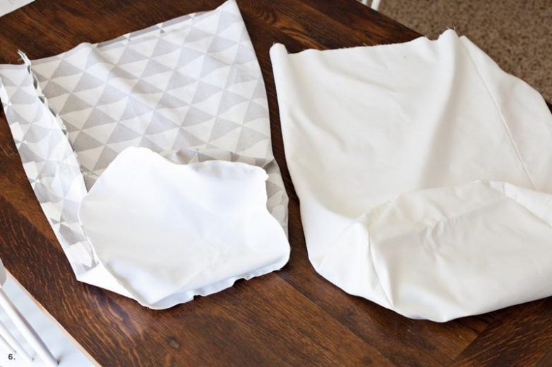 Внешний чехол выверните лицевой стороной наружу, а внутренний лицевой стороной внутрь. Вставьте внутренний чехол во внешний. Совместите их кромки. Несколько раз подверните внутрь и зафиксируйте булавками. Если нужно, предварительно прогладьте места изгибов горячим утюгом, чтобы ткань не топорщилась.