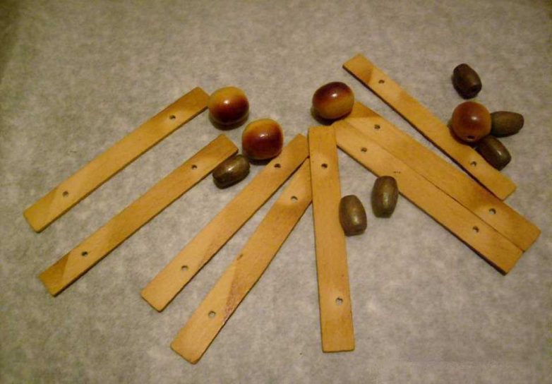 Наша вешалка для полотенец на кухню выполнена в классическом варианте. Для оригинальной вещицы подберите разноцветные бусинки, а дощечки покрасьте в яркий цвет. Однако не забывайте, что пластиковые предметы не подойдут, так как во время вкручивания шурупов они потрескаются. Да и срок службы у таких деталек короткий по той же причине.