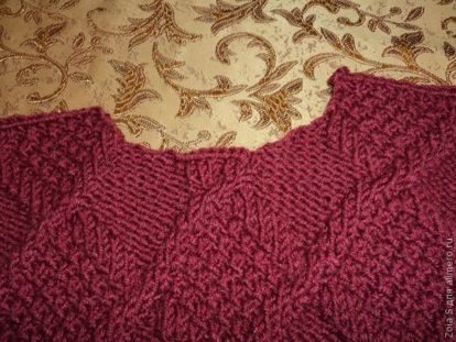 Связав еще 11 см, я посередине закрыла 21 петлю (тоже не все сразу, а равномерно). Через 4 см вязания я закрыла остальные петли.
