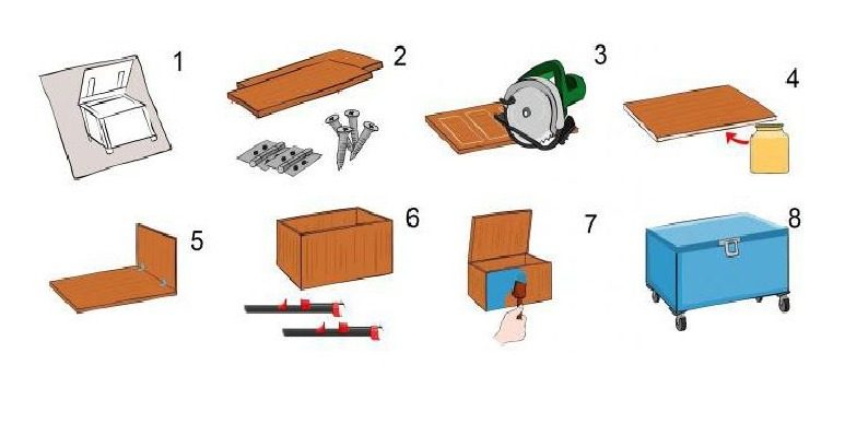 1. Нарисовать эскиз будущего короба, продумав нужные размеры и способы его передвижения (колесики или ручки для перемещения).