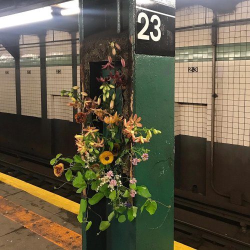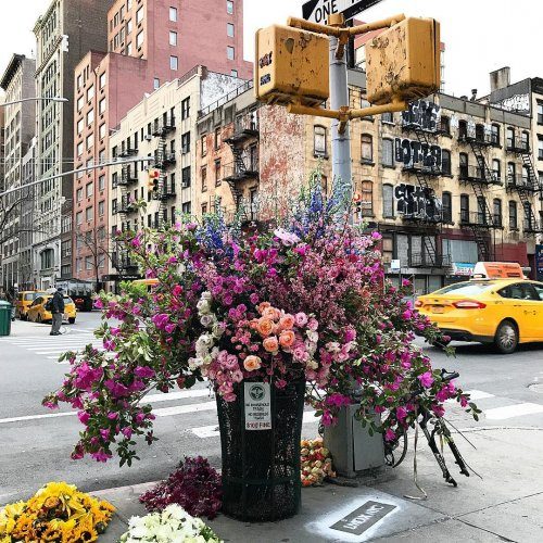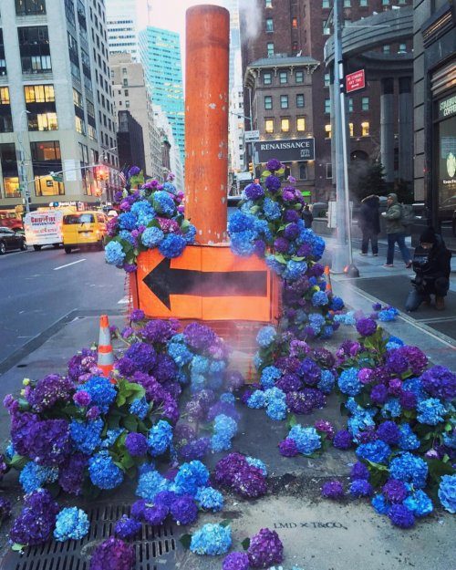 Флорист Льюис Миллер (Lewis Miller) продолжает украшать улицы Нью-Йорка, создавая цветочные композиции в самых неожиданных местах города.