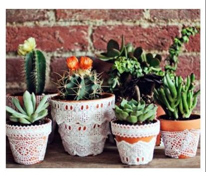 Поскольку все они разного цвета, у меня есть три варианта: обтянуть горшки одинаковой тканью, обклеить бумагой-самоклейкой или покрасить акриловой краской. Скорее всего, я выберу декор тканью.