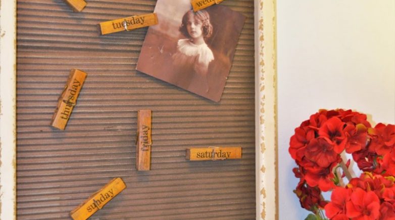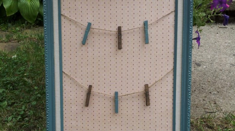 Кроме предложенных вариантов существует множество идей, особенно интересны популярные ретро варианты. Например, состаренная рама с натянутыми веревками в три ряда, на которых навешены по 3 деревянные прищепки. С помощью этих прищепок удобно фиксировать записки – необычный винтаж.