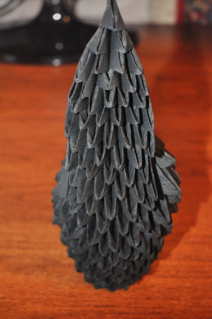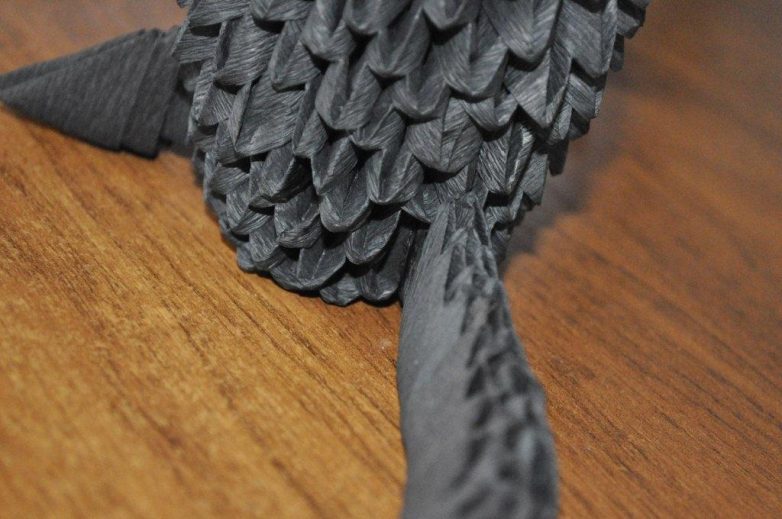 На дракончика в технике модульного оригами ушло всего 567 треугольных модулей, о создании которых я подробно рассказывала в предыдущей статье.