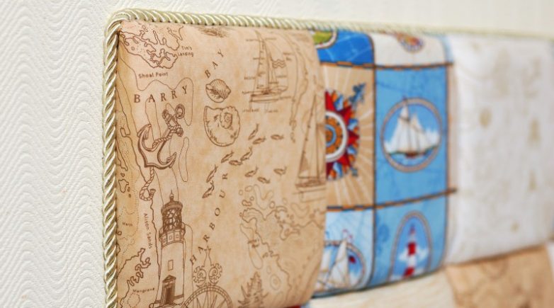 Поскольку этот способ не предполагает стяжки, то желательно взять ткань с ярким красивым принтом. Однотонная ткань также может выглядеть эффектно, нужно только выбрать удачный цвет, чтобы мягкое изголовье кровати своими руками радовало как можно дольше.