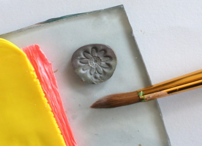 Штамп я приготовила заранее, сделав отпечаток металлической подвески на куске ненужной пластики.
