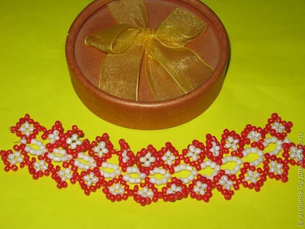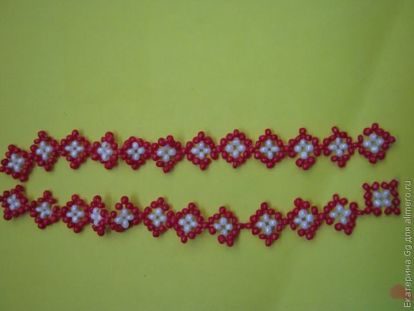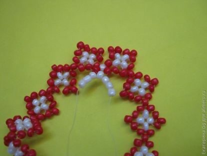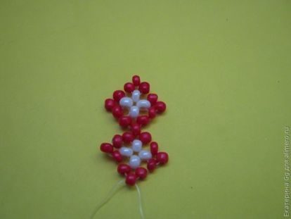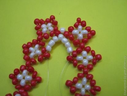 проходим через крайние красные бисеринки одной и второй цепочки.