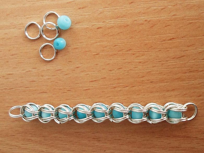 С каждым новым звеном работать становится всё проще, и к середине плетения браслета, вдохновлённые результатом, вы будете соединять колечки довольно быстро.