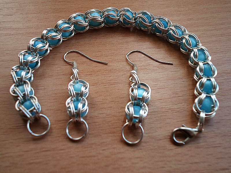 Мастерим браслет и серьги в технике кольчужного плетения