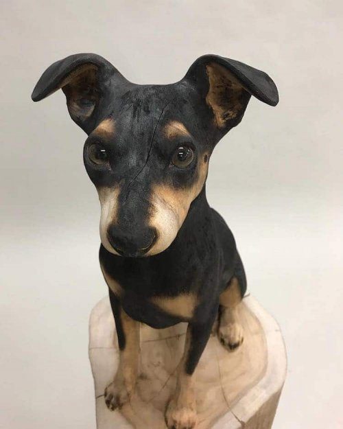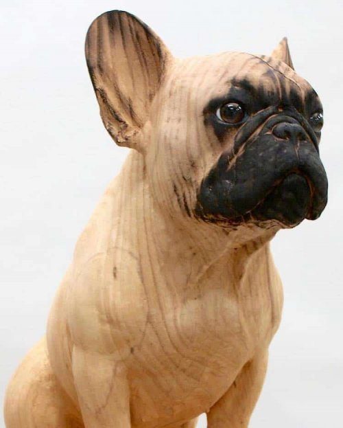Толстые куски дерева аккуратно вытачиваются, постепенно превращаясь в реалистичных кошек, собак и других животных, а для придания им ещё большей реалистичности скульптор прожигает поверхность дерева для достижения насыщенного, обугленного чёрного цвета.