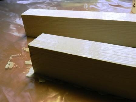 Когда поверхность полностью покрыта салфеткой, наносим еще один слой ПВА. Кстати, сторону бруска, которая впоследствии будет примыкать к стене или шкафу достаточно просто покрасить.