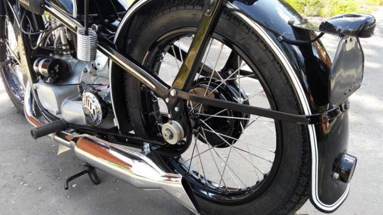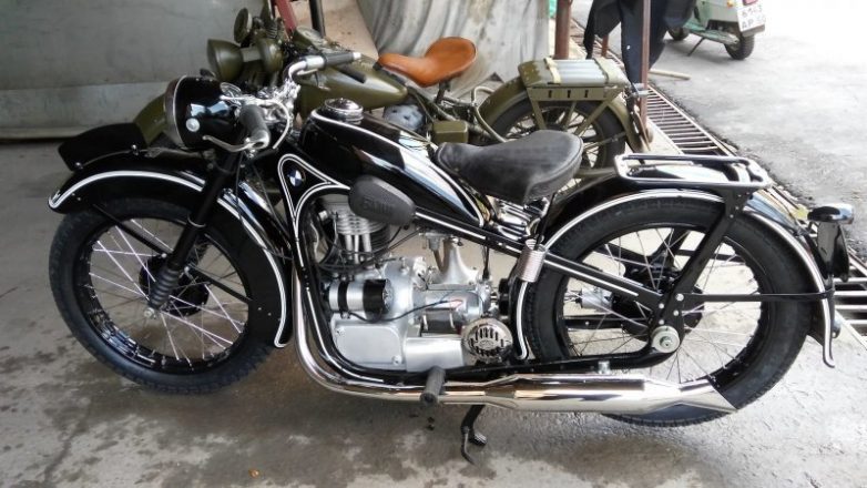 Немецкий мотоцикл времён Второй Мировой -BMW R35, надёжный и простой одноцилиндровый аппарат, прозванный в Польше «осликом» за свою выносливость и неприхотливость.