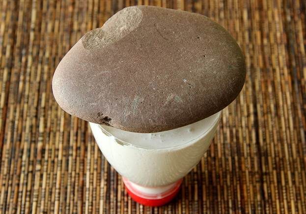 Чтобы бутылочка не всплывала в жидком гипсе, придавите ее любым удобным прессом.