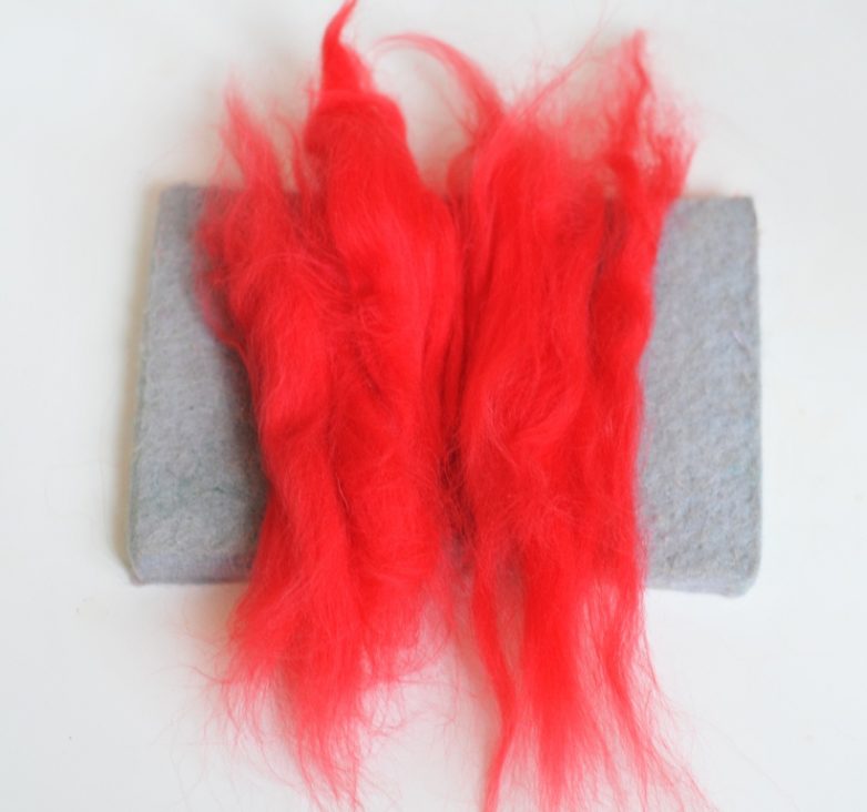 От общего мотка (особенно, если вы работаете с гребной лентой, которая чаще всего встречается на прилавках магазинов) начинайте отделять отдельные перышки шерсти для будущей детали. Подготовить их следует с изрядным запасом.Памятка: в процесс работы первоначальный объем шерсти уменьшиться примерно в 3-4 раза!