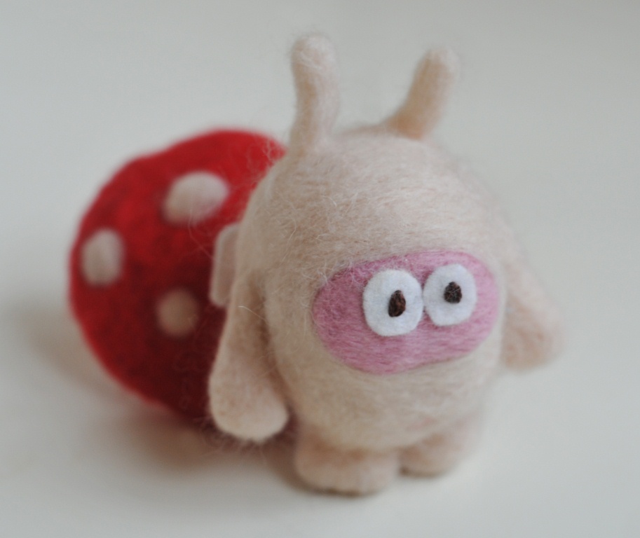 Если вы соединили между собой все детали фигурки и довольны результатом, пора приступать к заключительному, однако немаловажному этапу работы — шлифовке. Поверхность должная быть плотной, однородной и не ворсистой.Отделяем от основного мотка шерсти несколько маленьких перышек, разрывая их в разных направлениях, превращаем в легкий пух без длинных ворсинок. Получившееся «облачко» прикладываем к детали и самой тонкой иглой аккуратно приваливаем. Следующее облачко кладем немного внахлест и таким образом прорабатываем всю поверхность фигурки, пока она не станет абсолютно гладкой. Работа трудоемкая и кропотливая, однако без нее изделие не приобретет опрятный внешний вид!