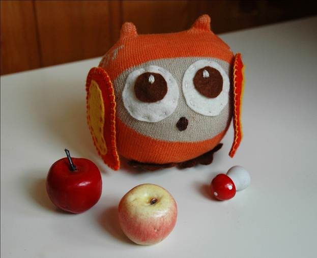 Когда все детали заняли свое место, сова готова. И не скажешь, что еще недавно это был ничем не примечательный носок!