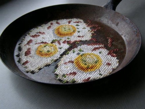 Она любит вышивать, но вместо ткани использует металл и другие твёрдые поверхности.