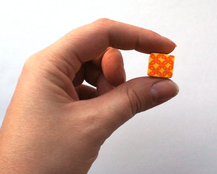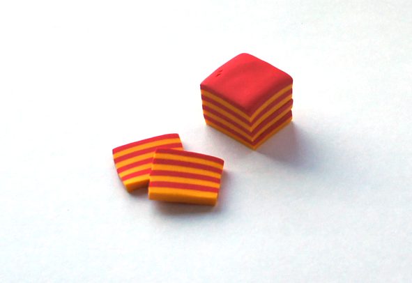 Теперь у нас в руках прямоугольная колбаса. Опять вытягиваем и ужимаем ее, стараясь сохранить углы прямыми. Разрезаем и снова складываем. Можно повторять эту процедуру сколько угодно раз. Я остановилась на таком повторяющемся орнаменте.