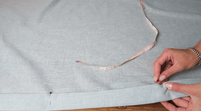 При необходимости обрабатываем полотно с боков и делаем соответствующие подгибы. Ширина готовой шторы должна совпадать с длинной планки-карниза.