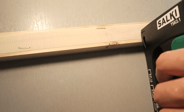 Прежде чем закрепить планки на потолке, прикрепляем к ним липучку.