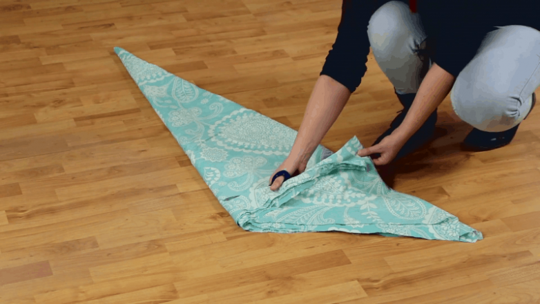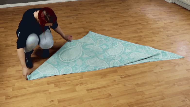 Первым шагом сложите ткань таким образом, чтобы у вас получился треугольник.