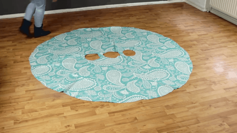 Когда вы полностью развернете ткань, она будет выглядеть как круг с тремя отверстиями посередине. Как бы удивительно это не было, но Ваше платье готово!