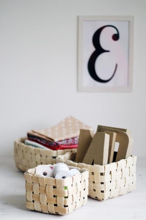 Корзинки из шпона отлично подойдут для хранения материалов и инструментов, а также других мелочей, которых много в любом доме. При плетении корзинок, размеры можно варьировать, подбирая их под свои нужды. Эту же технологию можно использовать при работе с берестой и даже цветным картоном.