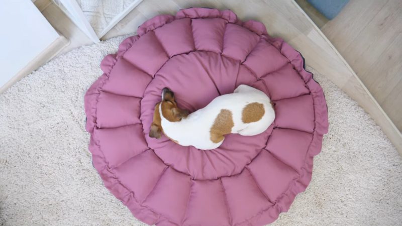 Вы только посмотрите, какую красивую лежанку-трансформер можно сделать самостоятельно: в раскрытом виде она похожа на коврик-цветок, а в стянутом — на потрясающую лежанку с высокими бортиками. Сделать её совсем не трудно — давайте скорее начнем!