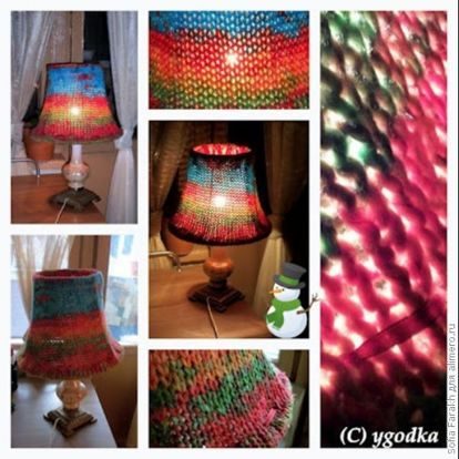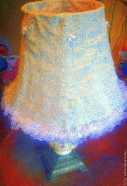 Абажур для старинной лампы я сделала из старой бенеттоновской кофты. А летом решила, что вязанный трикотаж — это слишком «тепло» и решила перейти на лен с вышивкой.