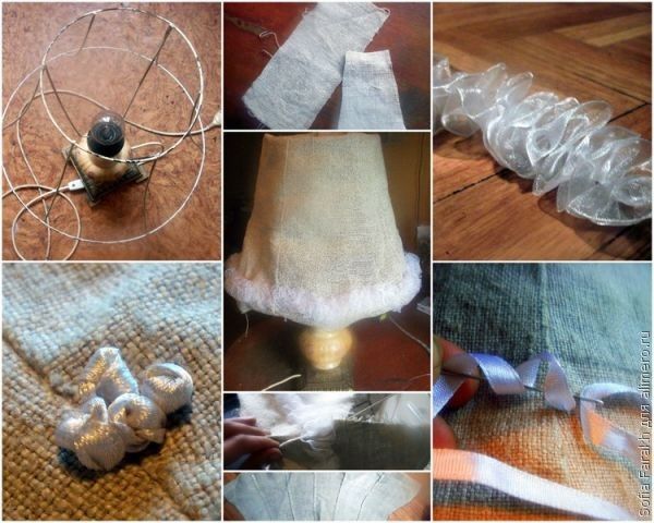 А вот теперь я выбрала лен, капроновые и атласные ленты. Сначала я измерила абажур с помощью рулонной линейки.