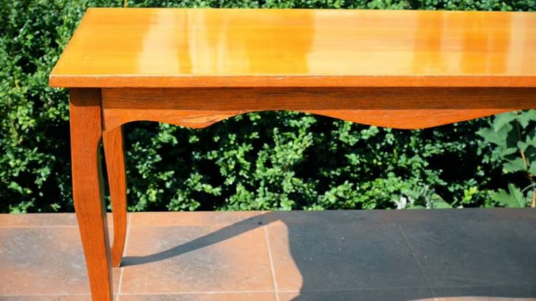 Шлифуем поверхность, убирая старый лак с поверхности стола.