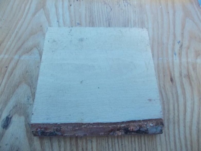 Вот такая древесина. С корой, с гвоздями, весь набор. От поддона отвалилась. Сначала подумал, что это нелюбимая сосна. Ну просто на территории отродясь ничего хорошего не валялось. Но в процессе не увидел характерных полос, структура вся какая-то изотропная, и режется так себе. В последствии знакомый друид опознал в доске березу. По коре.