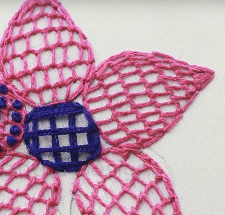 Серединку цветка заполните в виде сетки. Промежутки закройте с помощью описанной выше техники.