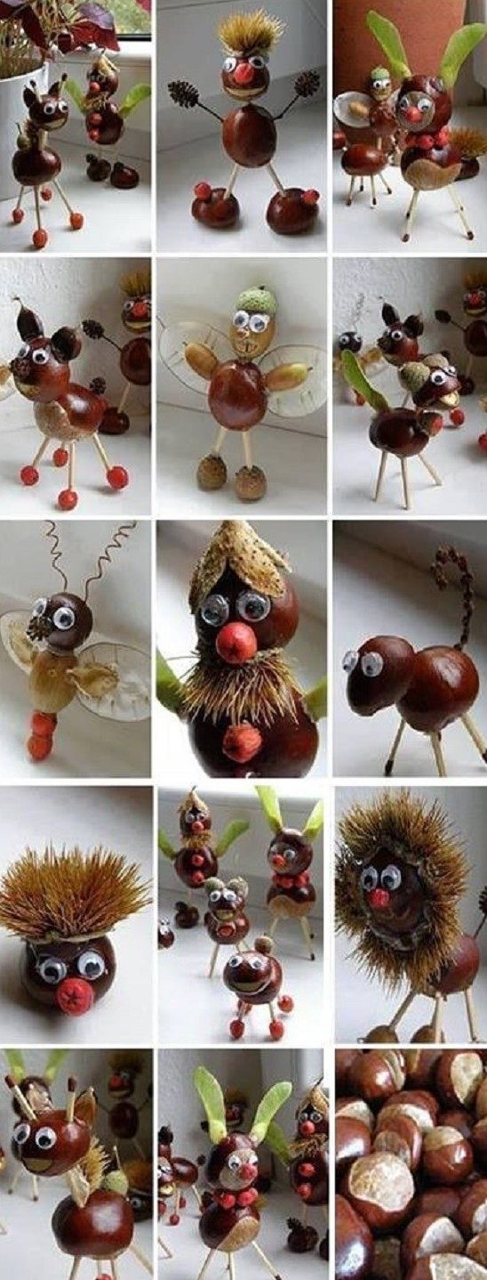 Яркие осенние поделки из каштанов