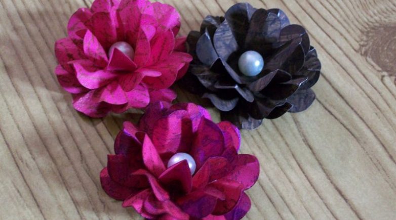 Объемные цветы создаются путем накладывания нескольких слоев с последующим закреплением и расправлением. Материалом может послужить обычная офисная бумага, калька, оберточная и гофрированная бумага.