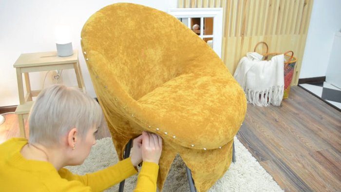 Такая переделка выглядит стильно, а, самое главное, совершенно неожиданно! Получилось стильное кресло-яйцо по мотивам Pottery Barn. Даже сложно поверить в то, что раньше это был обыкновенный офисный стул. Предлагаем вам оценить идею и результат по достоинству!