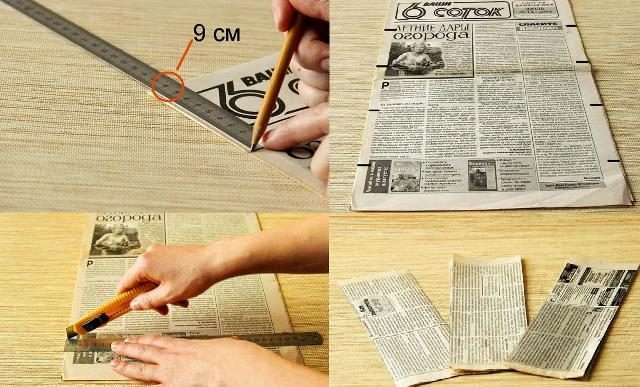Возьмите газету и с помощью линейки разделите её на продольные полосы. Ширина полосок – 9 см каждая.
