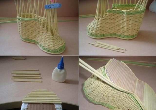 Оставшиеся концы трубочек необходимо удалить. Обрежьте концы либо вклейте их внутрь корзины.