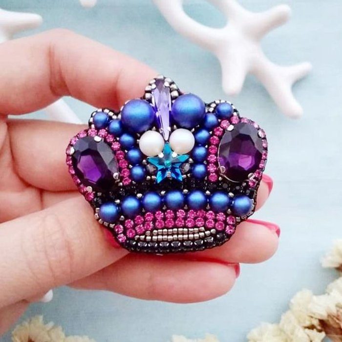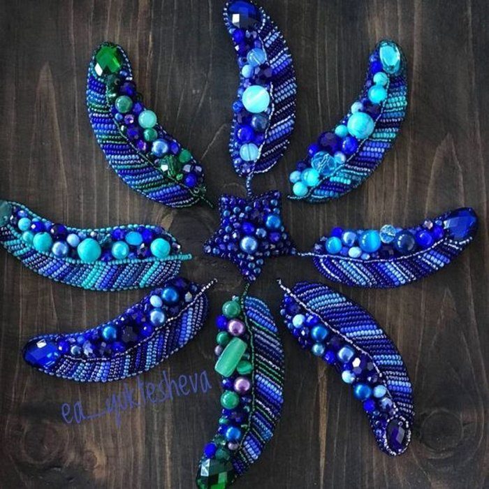 Крупные элементы броши закрепляйте суперклеем, дополнительно фиксируя бисерной нитью сверху. Начните работу с выбора дизайна, и вот несколько интересных идей.