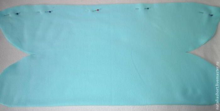 3. Разворачиваем ткань и вот что у нас вышло (как раз так выглядит обычно выкройка). Напоминаю, ткань у нас сейчас в два слоя.