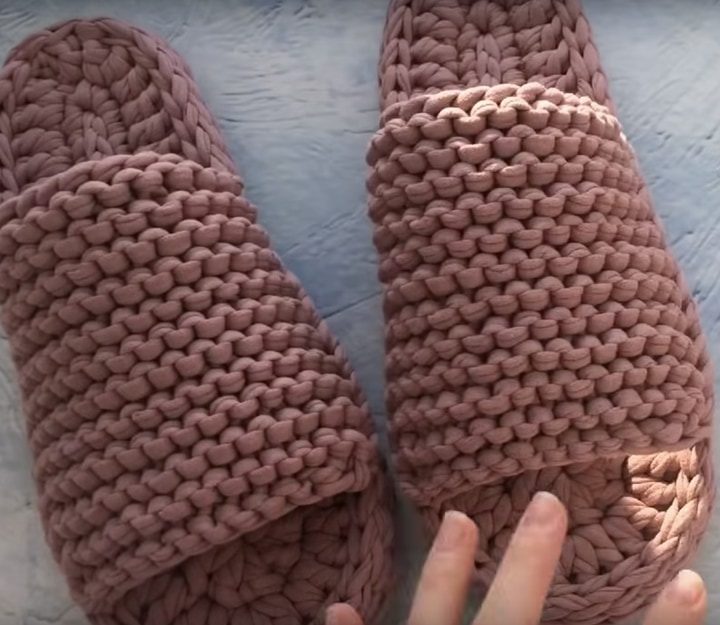 Вяжем тапочки с двойной подошвой из трикотажной пряжи