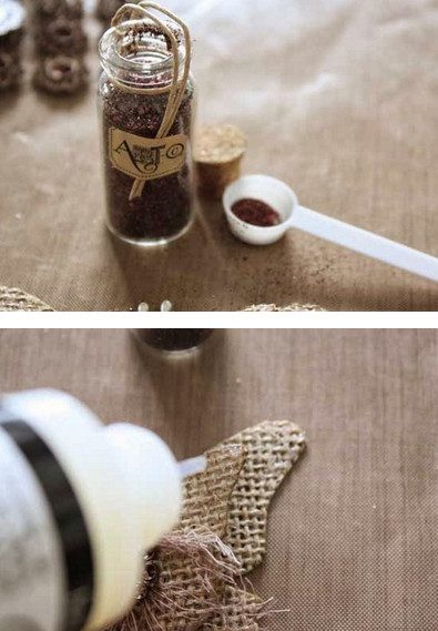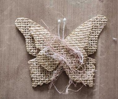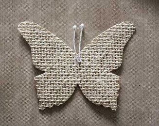 Так же случилось и с этим декором: мастерица просто отрезала кусок мешковины, добавила клея, немного украшения и креатива, и по итогу получилось весьма достойное украшение — хрупкие, нежные, очаровательные бабочки! Когда думаешь, что все возможные идеи декора были воплощены, появляется что-то новенькое и очень удачное.