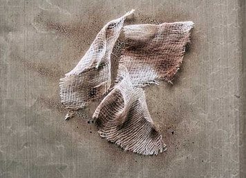 3. Возьмите кусочек марли и сбрызнете его тёмной краской для скрапбукинга (необязательно, но это придаст готовой бабочке шарма).